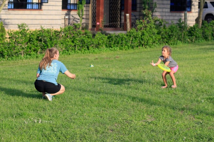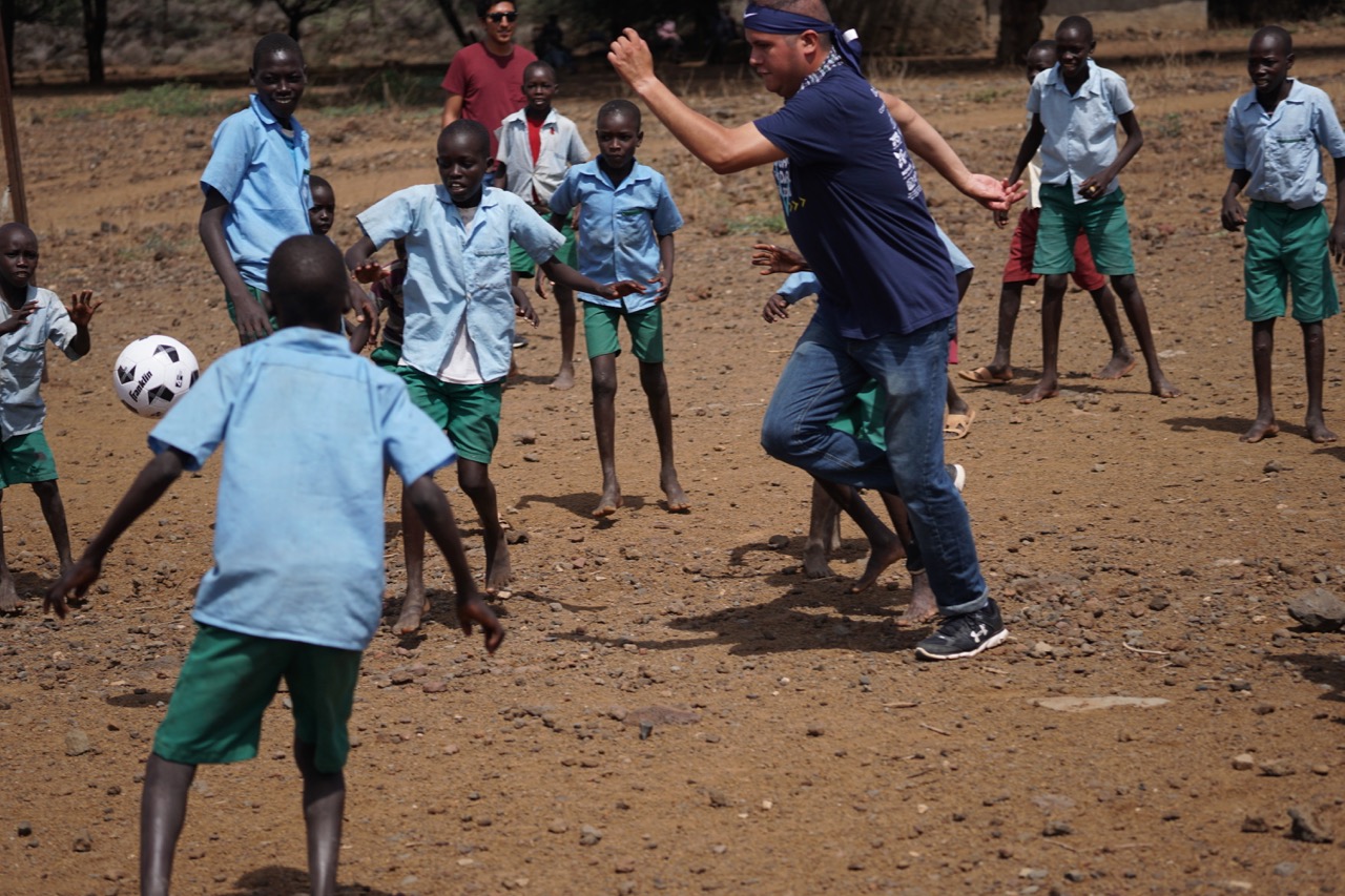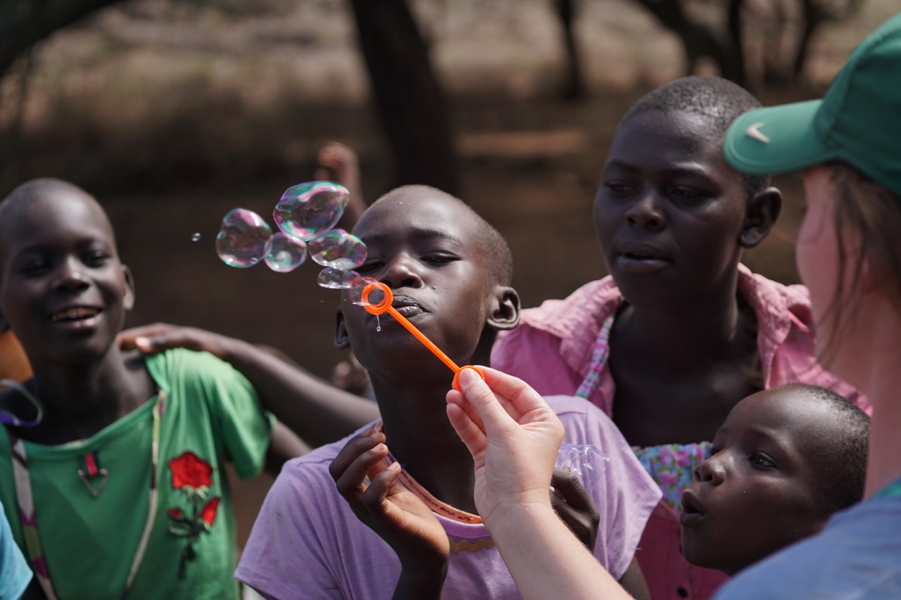 joined in on playing an intense game of soccer, blowing bubbles, skipping rope,