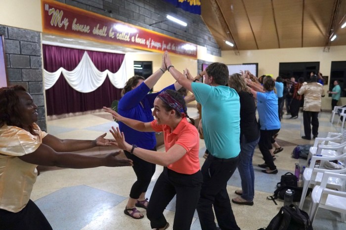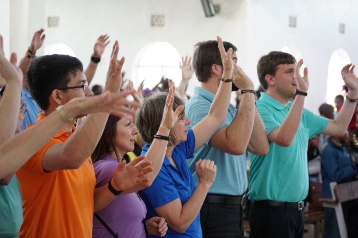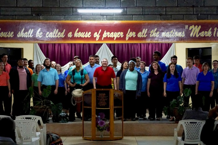 as a cappella renditions of “Great are You, Lord” echoed from some of the